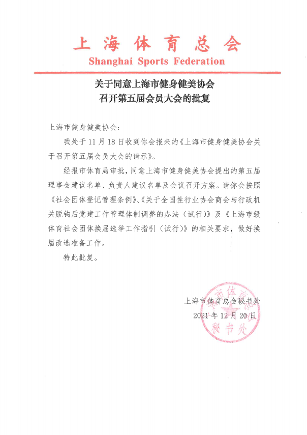 上海市健身健美协会第四届理事会任期届满,根据《社会团体登记管理条例》和《上海市健身健美协会章程》的有关规定,在民主推荐和广泛征求意见的基础上,由协会换届委员会会议研究,提出第五届理事会候选人建议名单。经上海市体育总会秘书处审核批准,现将第五届理事会候选人予以公示,公示时间从2021年12月22日-12月29日,共7天。