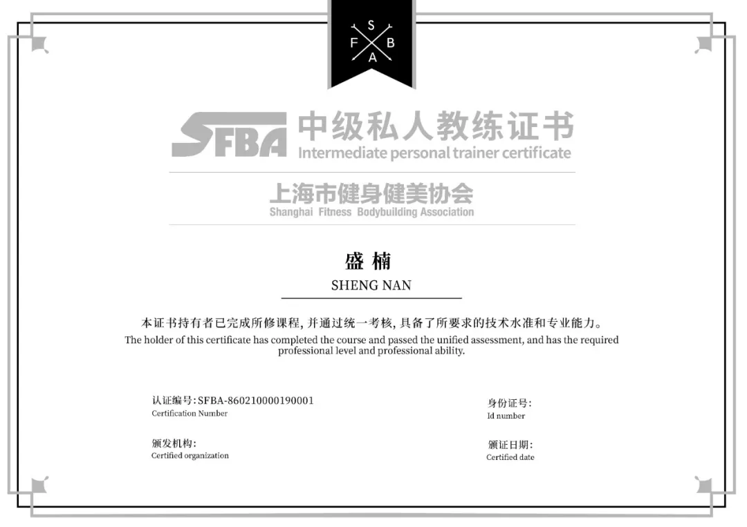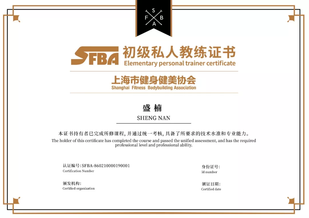 *审核通过后获上海市健身健美协会等级私人教练证书